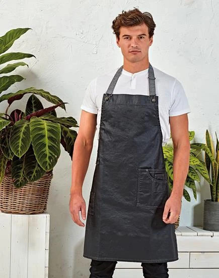 Eine Latzschürze mit Stilakzenten Ihrer Lieblingsjeans! Eine übergroße aufgesetzte Tasche, die Platz für ein Tablet bietet, mit klassischen, genähten Taschendetails für das Styling. Der gewachste Effekt sorgt für ein robustes, langlebiges Aussehen mit einem „Industrie-Chic“-Gefühl, das die Inneneinrichtung vieler moderner Restaurants widerspiegelt. Kombinieren Sie es mit der Taillenschürze PR135 „District“ für eine ergänzende Farbkombination.