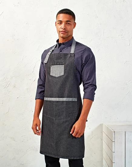 Diese Latzschürze ist eine skurrile Ergänzung des Denim-Sortiments und vermittelt mit ihren großen Gun-Metal-Ösen, die die Bänder an Ort und Stelle halten, ein „Industrie-Chic“-Feeling. Der Farbton auf der Unterseite bildet das kontrastierende Besatzdetail an den Taschen und Krawatten und sorgt so für einen tollen Wendeeffekt. Kombinieren Sie es mit der Taillenschürze PR128 „Domain“ für eine ergänzende Stilkombination.
