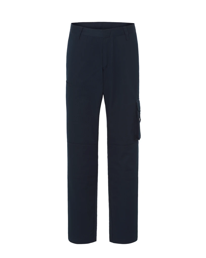 Ein Riemen aus gleichem Stoff vom unteren Teil der linken Gesäßtasche bis zur Seitennaht.
