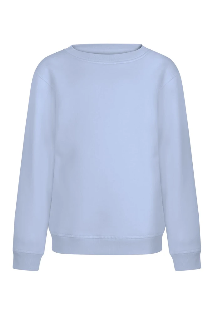 KINDER Sweatshirt mit Rundhalsausschnitt. Gebürsteter Fleece. 85 % Bio-Baumwolle (RingSpun) – 15 % recyceltes Polyester. 300 g/m². Gebürsteter Fleece, weich, bequem und warm. Formbeständiger Kragen, Bund und Ärmelbündchen aus geripptem Strickstoff 1x1. Verstärktes Innenband im Nacken mit Fischgrätenmuster. Kein Markenlabel im Nacken. Unisex-Größen: DUNE Damengrößen: DUNE WOMAN