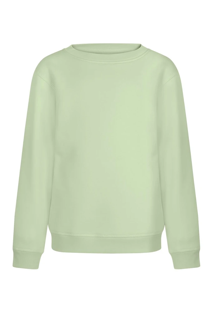 KINDER Sweatshirt mit Rundhalsausschnitt. Gebürsteter Fleece. 85 % Bio-Baumwolle (RingSpun) – 15 % recyceltes Polyester. 300 g/m². Gebürsteter Fleece, weich, bequem und warm. Formbeständiger Kragen, Bund und Ärmelbündchen aus geripptem Strickstoff 1x1. Verstärktes Innenband im Nacken mit Fischgrätenmuster. Kein Markenlabel im Nacken. Unisex-Größen: DUNE Damengrößen: DUNE WOMAN