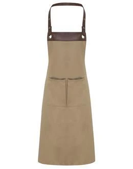 Diese Schürze kombiniert Polyester-Baumwolle mit weichem Kunstleder für ein wirklich cooles, modernes Design. Die Oberseite der Schürze hat einen Kunstlederbesatz mit zwei großen Ösen, durch die das Nackenband geschlungen wird. Das Nackenband ist auf jeder Seite mit zwei Druckknöpfen verstellbar. Eine Mitteltasche, die in der Mitte aufgenäht ist, um zwei praktische Balgtaschen zu schaffen, rundet diese skurrile Schürze ab.