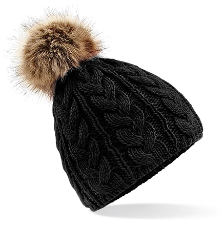 Beanie mit Kunstpelz-Pop-Pom-Kabel