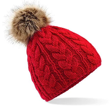 Beanie mit Kunstpelz-Pop-Pom-Kabel