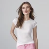Damen T-Shirt, tailliert. Eingefasster Rundhalskragen aus gleichem Gewebe. Seitennähte. Polyester mit Baumwollfeeling.
