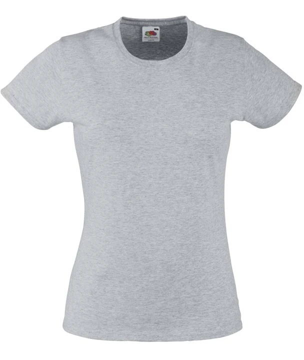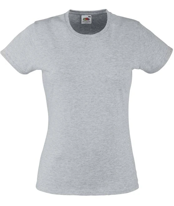 Material: 100 % Baumwolle; Graumeliert: 97 % Baumwolle, 3 % Polyester;HD, R6, RX, VF, VH, HP, H1: 50% Baumwolle, 50% Polyester; Gewicht: 165 g/m² (weiß: 160 g/m²); Rundhalsausschnitt mit Baumwolle/LYCRA®-Ripp, Nackenband aus dem gleichen Stoff, geformte Seitennähte für eine feminine Passform, Feinstrickdichte für bessere Bedruckbarkeit, Abreißetikett, femininer Fashion-Fit-Schnitt; Zertifikate: STANDARD 100 by OEKO-TEX®; WRAP