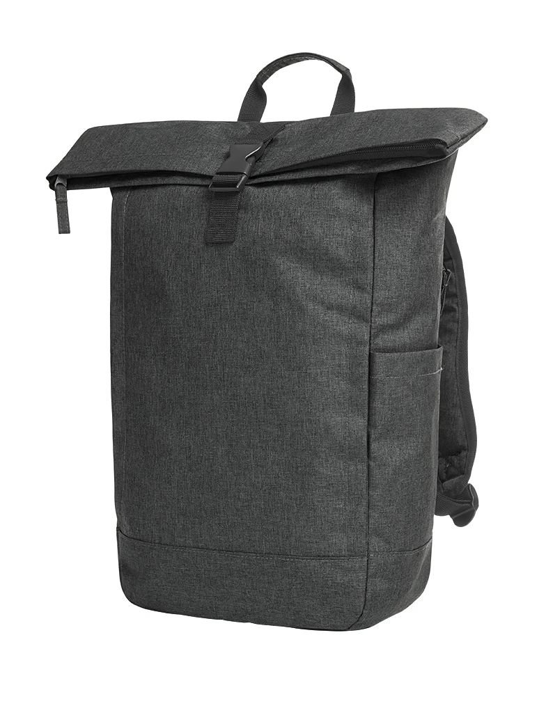 Urban Rucksack mit Reißverschluss Hauptfach und Schnallenverschluss; rPET - Obermaterial; Gepolsterte Tasche und Organizer-Elemente innen, Außentasche mit Reißverschluss an der Seite, zwei Seitentaschen für Flaschen usw., Reißverschlusstasche auf der Rückseite, gepolstertes Gurtsystem, Griff