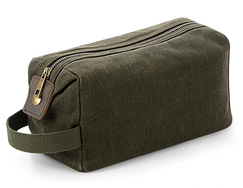 TearAway-Label für einfaches Rebranding, Echtleder-Akzente, extra langer Hauptfach-Reißverschluss für einfachen Zugriff, komplett gefüttert, Innentasche mit Reißverschluss, interne Organisationstaschen, Tragegriff aus Baumwollgewebe, Beschläge in Antikmessingoptik; Maße: 25 x 13 x 11 cm; Fassungsvermögen: 4 Liter