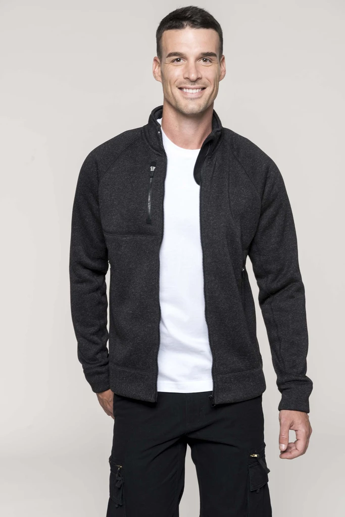 Angerautes Innenfutter aus 100 % Polyester. Raglanärmel. Reißverschluss. 2 kontrastfarbene Reißverschlusstaschen vorne und 1 kontrastfarbene Brusttasche mit Reißverschluss. Überdecknaht an den Einsätzen. Sehr bequemer Schnitt und Material.