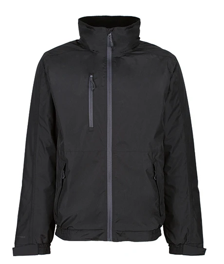 100% recyceltes wasserdichtes und atmungsaktives Polyestermaterial Isotex 10.000 mit recycelter TPU-Membran, versiegelten Nähten und DWR (Durable Water Repellent) Imprägnierung für Allwetterschutz, 100% recyceltes Polyestermaterial mit Fleecefutter, mit recycelter Thermoguard-Körperisolierung 120 g/m², versteckte Kapuze, 2 RV-Bodentaschen und RV-Brusttasche, verdeckter Reißverschluss im Futter für Zugriff auf Stickereien, aus mind. 40 Plastikflaschen