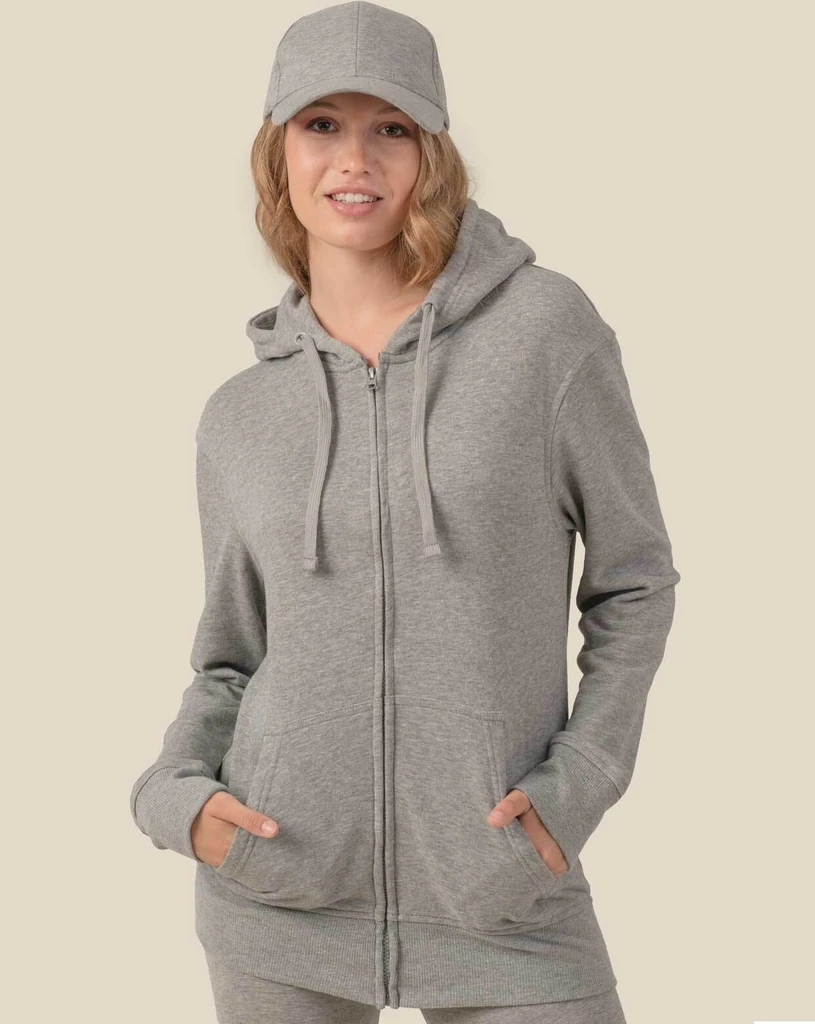 Damen Kapuzenpullover mit durchgehendem Reißverschluss und Kängurutasche aus French Terry.