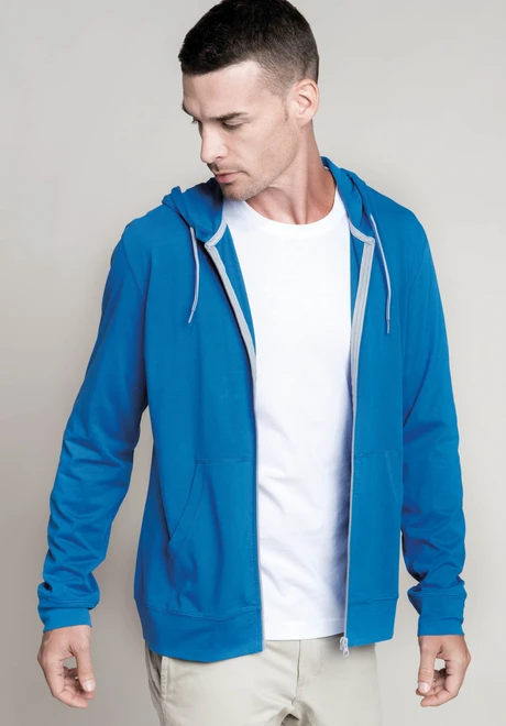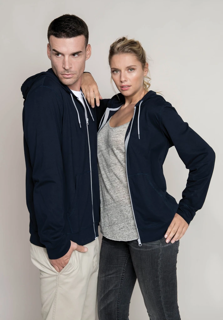 100 % gekämmte Baumwolle, Enzymwäsche veredelt (Oxford Grey: 90 % Baumwolle / 10 % Viskose). Super weiche Textur. Moderner, lässiger Schnitt. Kontrastfarbenes Nackenband (Dark Grey bei Farbton Oxford Grey und Oxford Grey bei allen anderen Farbtönen). 2 Kängurutaschen. Ärmelabschlüsse und Bund abgesetzt. Reißverschluss und Kordelzug an der Kapuze in Kontrastfarbe.