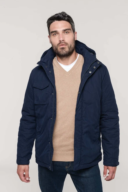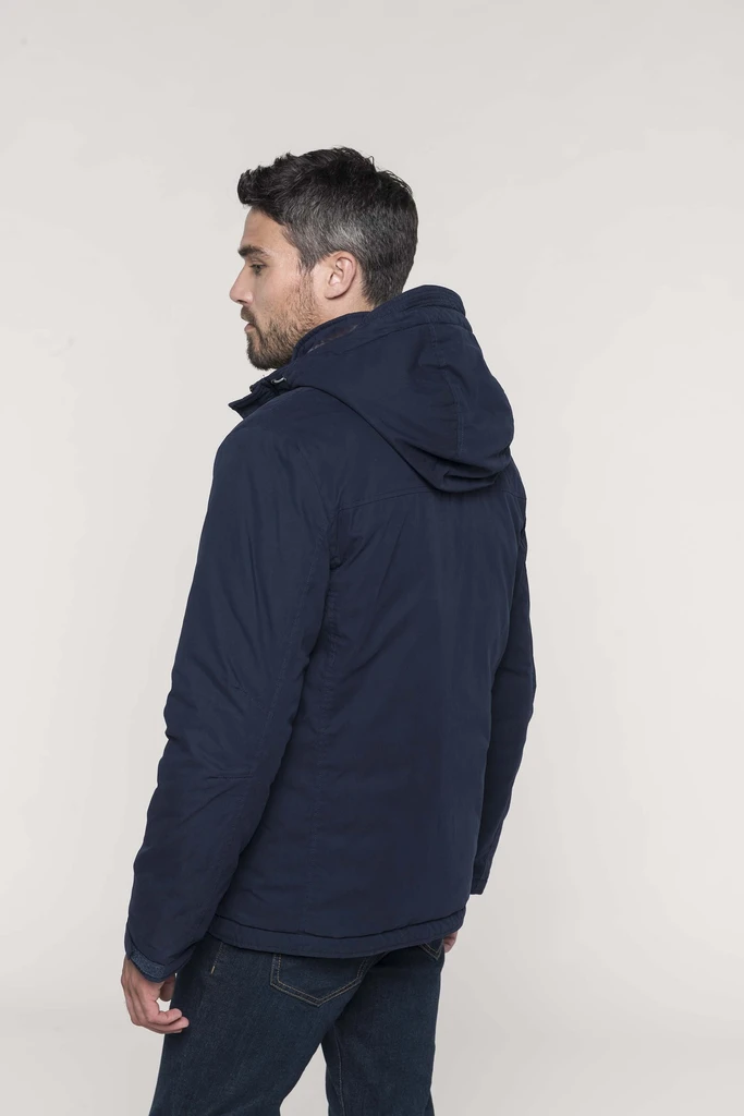 Gefütterte, kontrastreiche und gesteppte Kapuze mit Schirm und Kordelzug