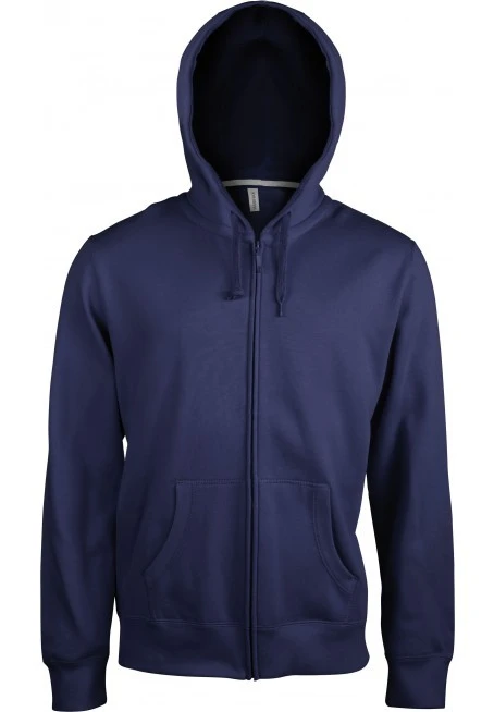 80% gekämmte Baumwolle / 20% Polyester. Gebürstetes Fleece. Verstärktes Kontrast-Nackenband (Heather Grey für alle Farben, Middle Grey für Oxford-Grey). Kängurutasche. Gerippt an Bund und Saum. Gefütterte Kapuze in Kontrastfarbe innen und Kordelzug. YKK® Reißverschluß.