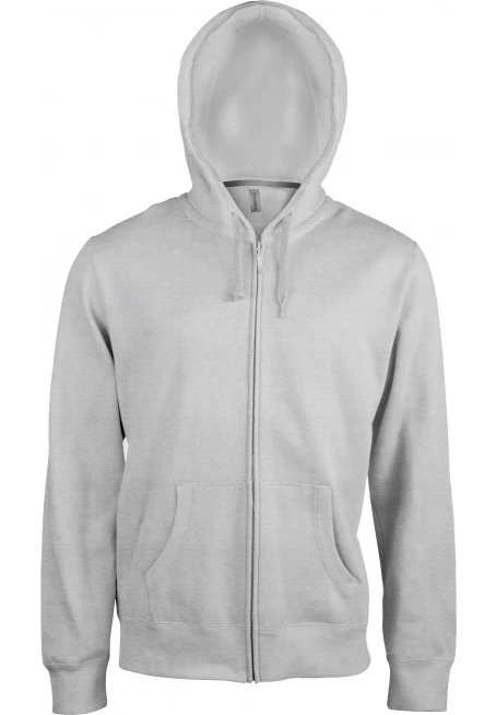 80% gekämmte Baumwolle / 20% Polyester. Gebürstetes Fleece. Verstärktes Kontrast-Nackenband (Heather Grey für alle Farben, Middle Grey für Oxford-Grey). Kängurutasche. Gerippt an Bund und Saum. Gefütterte Kapuze in Kontrastfarbe innen und Kordelzug. YKK® Reißverschluß.