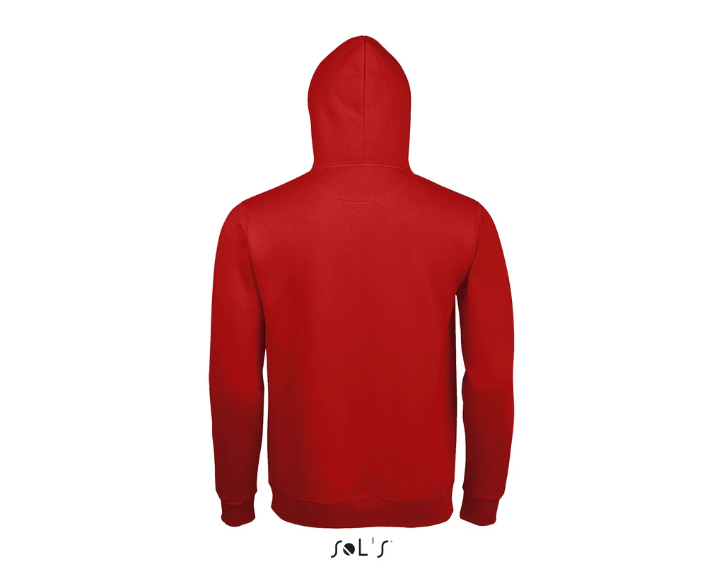 QUALITÄT: 280 MOLTON mit LSF-TECHNOLOGIE (Low Shrinkage Fabric); 80% ringgesponnene Baumwolle, 20% Polyester, Angeraute Innenseite, Außenmaterial: 100% Baumwolle; Kängurutasche, Seitennähte, Gefütterte Kapuze mit Zugband, Feinrippeinfassung an Ärmelbündchen und Saum 2x2, Halbmondpasse auf der Krageninnenseite, Nackenband auf der Krageninnenseite; Zertifikat: STANDARD 100 by OEKO-TEX®