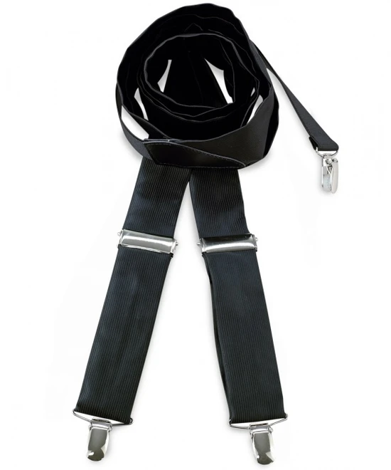 Hosenträger aus Krawattenstoff, leicht glänzend und mit feiner Streifenstruktur – ein Blickfang und ein stylishes Accessoire, das jedes Outfit auf originelle Weise veredelt. Kann farblich perfekt mit Krawatten und Fliegen abgestimmt werden. Länge verstellbar, Breite 3,5 cm.