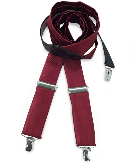 Hosenträger aus Krawattenstoff, leicht glänzend und mit feiner Streifenstruktur – ein Blickfang und ein stylishes Accessoire, das jedes Outfit auf originelle Weise veredelt. Kann farblich perfekt mit Krawatten und Fliegen abgestimmt werden. Länge verstellbar, Breite 3,5 cm.