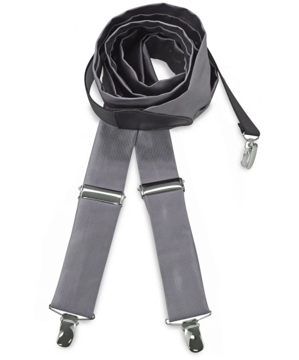 Hosenträger aus Krawattenstoff, leicht glänzend und mit feiner Streifenstruktur – ein Blickfang und ein stylishes Accessoire, das jedes Outfit auf originelle Weise veredelt. Kann farblich perfekt mit Krawatten und Fliegen abgestimmt werden. Länge verstellbar, Breite 3,5 cm.