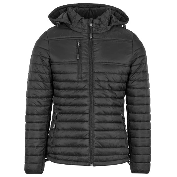 Die HRM Steppjacke für Damen besteht zu 100 % aus Polyamid, das durch seine Leichtigkeit und Atmungsaktivität für ein besonders angenehmes Tragegefühl sorgt. Die Jacke ist mit zwei Seitentaschen mit Reißverschluss ausgestattet, die großzügigen Stauraum bieten. Darüber hinaus verfügt es über zwei Innentaschen für persönliche Gegenstände. Eine zusätzliche Finishing-Tasche auf der linken Innenseite bietet viel Platz für jede Art von Stickerei. Das besondere Highlight der Steppjacke ist die abnehmbare Kapuze sowie ihr modischer Schnitt, der sie sowohl für den Alltag als auch für Outdoor-Aktivitäten perfekt macht. Die hochwertige Verarbeitung garantiert nicht nur eine lange Haltbarkeit, sondern auch eine ansprechende Optik. Unsere Steppjacke HRM überzeugt nicht nur durch ihre Funktionalität, sondern auch durch ihr modisches Aussehen und hohen Tragekomfort. Ein unverzichtbarer Begleiter für jeden Anlass mit dem gewissen Etwas.