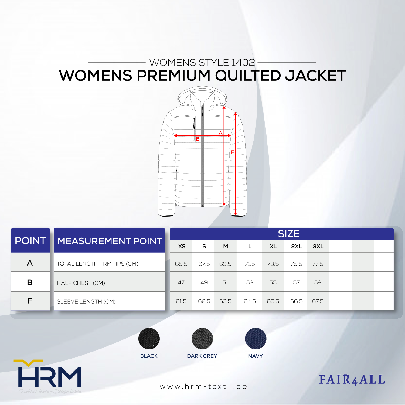 Die HRM Steppjacke für Damen besteht zu 100 % aus Polyamid, das durch seine Leichtigkeit und Atmungsaktivität für ein besonders angenehmes Tragegefühl sorgt. Die Jacke ist mit zwei Seitentaschen mit Reißverschluss ausgestattet, die großzügigen Stauraum bieten. Darüber hinaus verfügt es über zwei Innentaschen für persönliche Gegenstände. Eine zusätzliche Finishing-Tasche auf der linken Innenseite bietet viel Platz für jede Art von Stickerei. Das besondere Highlight der Steppjacke ist die abnehmbare Kapuze sowie ihr modischer Schnitt, der sie sowohl für den Alltag als auch für Outdoor-Aktivitäten perfekt macht. Die hochwertige Verarbeitung garantiert nicht nur eine lange Haltbarkeit, sondern auch eine ansprechende Optik. Unsere Steppjacke HRM überzeugt nicht nur durch ihre Funktionalität, sondern auch durch ihr modisches Aussehen und hohen Tragekomfort. Ein unverzichtbarer Begleiter für jeden Anlass mit dem gewissen Etwas.