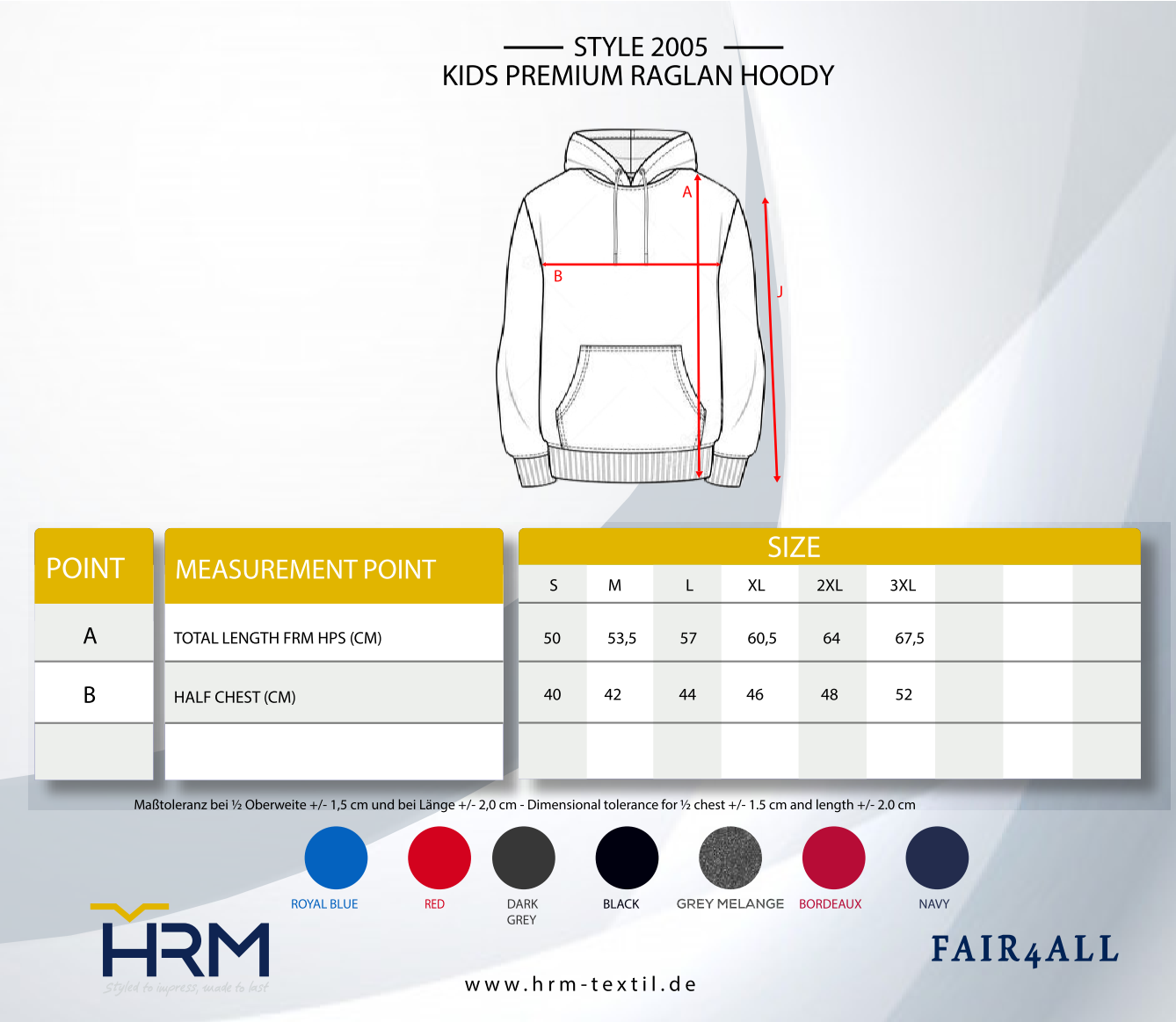 HRM KID´S PREMIUM RAGLAN HOODIES & HOODED JACKETS sind aus 70% hochwertiger, gekämmter, ringgesponnener, Baumwolle und 30% recyceltem Polyester hergestellt. Der Tragekomfort zeichnet sich besonders durch die exzellente Verarbeitung, die weichen, anschmiegsamen Materialien und die kindgerechte, modern-klassische Passform aus. Zwei Seitentaschen mit Reißverschluss und zwei Innentaschen bieten Stauraum und unterstreichen die Alltagstauglichkeit. Der Kapuzenzug, mit breiten Ton-in-Ton Kordeln und je drei Metallösen im Antik-Look, ist ästhetisch ansprechend gelöst. Dank der feinen Oberflächenstruktur sind sie geradezu ideal für die Textilveredelung.