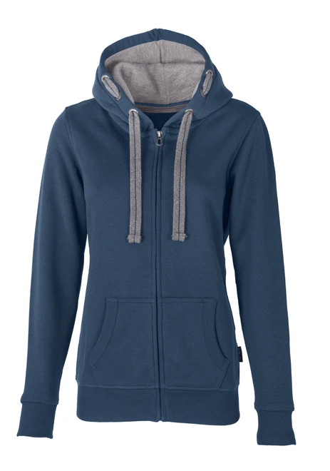Die HRM Damen-Kapuzenjacken bestehen aus einer auffallend weichen Mischung aus 80 % Baumwolle und 20 % Polyester. Die speziell gestalteten Details wie die Kapuze mit Kontrastfutter, 3 HRM Metallösen auf jeder Seite, die mittig bestickte, flache Kontrastkordel und ein Ton-in-Ton-Reißverschluss mit HRM-Metallschieber sind ein echter Hingucker. Die Taschen sowie die Taille haben als Abschluss einen 2x2 Rippstrick. Ein verstärktes farblich passendes Nackenband erhöht den Tragekomfort. Die sehr glatte Oberflächenstruktur garantiert eine gute Finishfähigkeit. Die Kapuzenjacken sind, bis auf das gewebte Fair4All Flag-Label in der linken Seitennaht, etikettenfrei. Sie sind bei kaltem und windigem Wetter sehr universell einsetzbar.