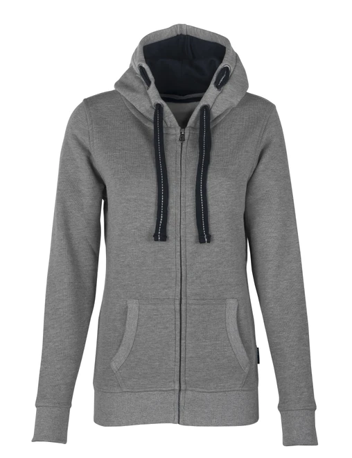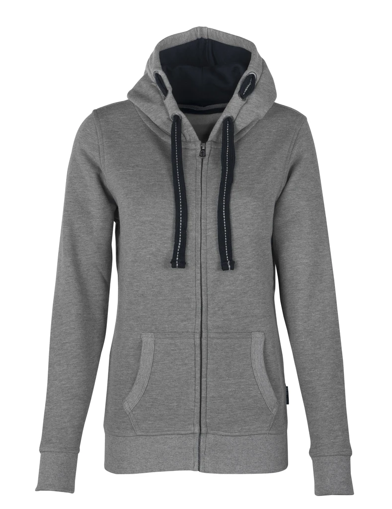 Die HRM Damen-Kapuzenjacken bestehen aus einer auffallend weichen Mischung aus 80 % Baumwolle und 20 % Polyester. Die speziell gestalteten Details wie die Kapuze mit Kontrastfutter, 3 HRM Metallösen auf jeder Seite, die mittig bestickte, flache Kontrastkordel und ein Ton-in-Ton-Reißverschluss mit HRM-Metallschieber sind ein echter Hingucker. Die Taschen sowie die Taille haben als Abschluss einen 2x2 Rippstrick. Ein verstärktes farblich passendes Nackenband erhöht den Tragekomfort. Die sehr glatte Oberflächenstruktur garantiert eine gute Finishfähigkeit. Die Kapuzenjacken sind, bis auf das gewebte Fair4All Flag-Label in der linken Seitennaht, etikettenfrei. Sie sind bei kaltem und windigem Wetter sehr universell einsetzbar.