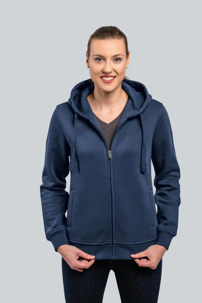 HRM Premium Hooded Jackets werden aus 70 % hochwertiger, gekämmter, ringgesponnener Baumwolle und 30 % recyceltem Polyester hergestellt. Der Tragekomfort zeichnet sich besonders durch die exzellente Verarbeitung, die weichen, anschmiegsamen Materialien und die modern-klassische Passform aus. Zwei Seitentaschen mit Reißverschluss und zwei Innentaschen unterstreichen die Alltagstauglichkeit der HRM Hooded Jackets. Saum, Taschenabschluss und Ärmelbund sind aus hochwertigem 1x1-Rippstrick. Der Kapuzenzug, mit breiten Ton-in-Ton-Kordeln und je drei Metallösen im Antik-Look, ist ästhetisch ansprechend gelöst. Dank der feinen Oberflächenstruktur sind sie perfekt für die Textilveredelung. Sie sind für Freizeit, Teamsport, Workwear, Indoor- und Outdoor universell einsetzbar.