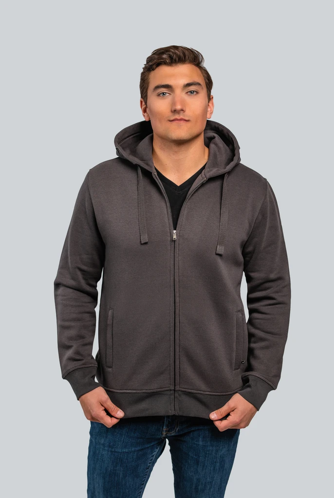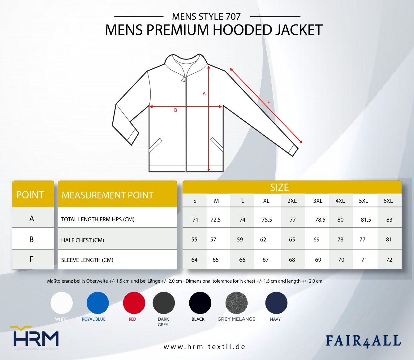 HRM Premium Hooded Jackets werden aus 70 % hochwertiger, gekämmter, ringgesponnener Baumwolle und 30 % recyceltem Polyester hergestellt. Der Tragekomfort zeichnet sich besonders durch die exzellente Verarbeitung, die weichen, anschmiegsamen Materialien und die modern-klassische Passform aus. Zwei Seitentaschen mit Reißverschluss und zwei Innentaschen unterstreichen die Alltagstauglichkeit der HRM Hooded Jackets. Saum, Taschenabschluss und Ärmelbund sind aus hochwertigem 1x1-Rippstrick. Der Kapuzenzug, mit breiten Ton-in-Ton-Kordeln und je drei Metallösen im Antik-Look, ist ästhetisch ansprechend gelöst. Dank der feinen Oberflächenstruktur sind sie perfekt für die Textilveredelung. Sie sind für Freizeit, Teamsport, Workwear, Indoor- und Outdoor universell einsetzbar.