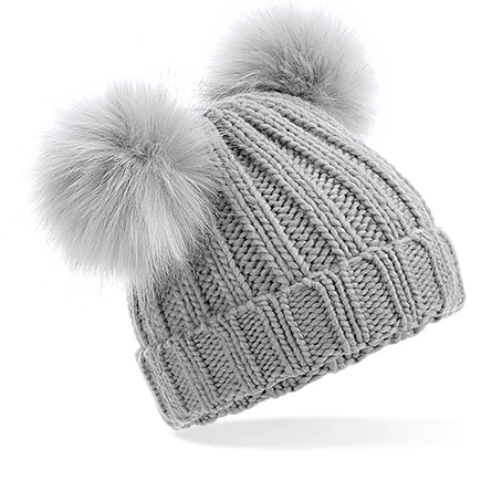 TearAway-Label für einfaches Rebranding, üppiger schwerer Rippstrick, luxuriöse Kunstpelz-Pom Poms, nicht abnehmbare Pompons für zusätzliche Sicherheit, Bündchen-Design für optimale Dekoration
