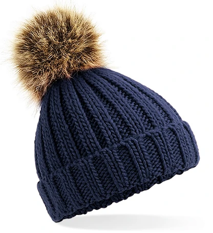 Chunky Beanie aus Kunstpelz mit Pop-Pom
