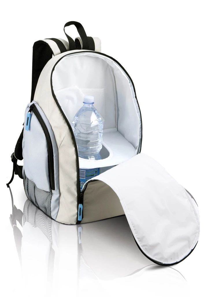 Isotherm-Rucksack aus 600D+EPA+PEVA, PU-Beschichtung. Gepolsterter Hüft- & Schultergurt, seitliche Tasche mit Reißverschluß und einer Netztasche. Das geräumige Hauptkühlfach lässt sich in zwei separate Fächer umgewandelt werden. Flaschenhalterung. SBS-Reißverschlüsse. Dimensions: 45 x 30 x 17 cm