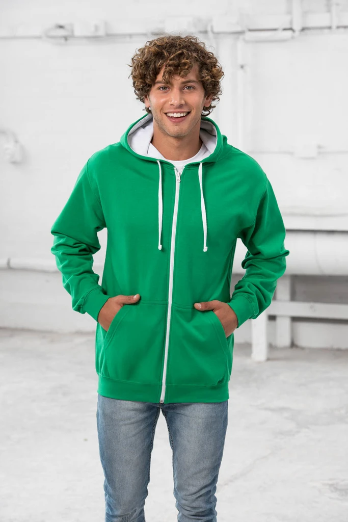 Durchgehender Reißverschluss Hoodie mit Kontrast Kunststoff Reißverschluss