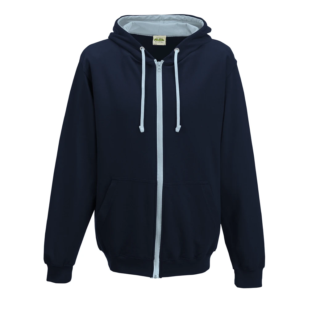 Durchgehender Reißverschluss Hoodie mit Kontrast Kunststoff Reißverschluss