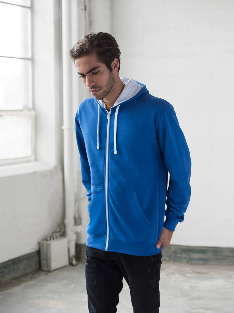 Durchgehender Reißverschluss Hoodie mit Kontrast Kunststoff Reißverschluss
