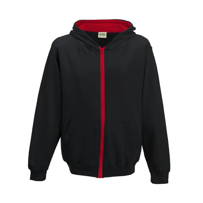 Durchgehender Reißverschluss Hoodie mit Kontrast Kunststoff Reißverschluss