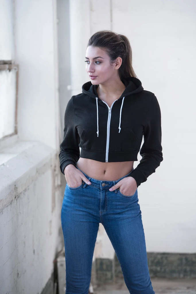 Reißverschluss beschnittene Hoodie mit Metall YKK-Reißverschluss