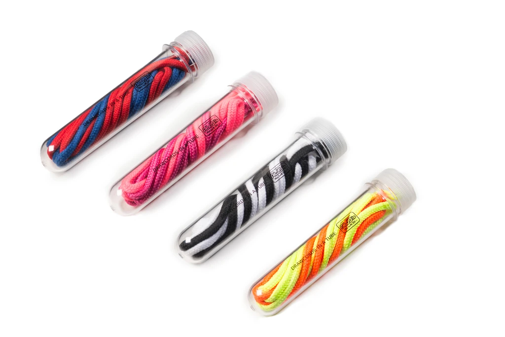Jedes Röhrchen enthält zwei Kordeln in verschiedenen Farben