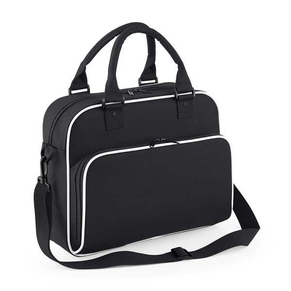 Retro styling, can be carried by hand or over the shoulder, detachable adjustable shoulder strap, zippered main compartment, zippered front pocket, internal mesh pocket, internal baseboard