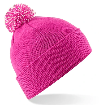 Doppelfunktion - mit Umschlag als Mütze oder ohne Umschlag als Slouch-Beanie, Doppellagiger Strick, Geripptes Bündchen, Bommel in Zwei-Ton-Optik