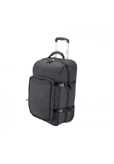 Flugzeugkabinentauglicher Trolley aus der JAP-Kollektion, aus Twist 600HD, abnehmbare Fronttasche, um das Bedrucken oder Sticken zu erleichtern. Design Silikon Räder in Kontrastfarbe, zwei regelbare Innenfächer, Gummigriff.