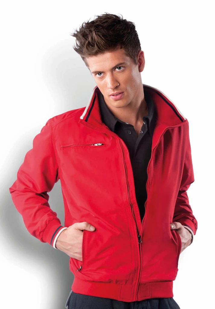 100% Polyamid Taslan Ottoman. Futter: 100% Polyester-Netzgewebe. Solides Gewebe mit Matteffekt. Zwei Fronttaschen mit Reißverschluß. Eine Brusttasche. Eine Innentasche. Kragen und Ärmel mit Kontraststreifen. Netzfutter mit Reißverschluß für leichtes Veredeln. Rippstrick am Bund einfarbig. Rippstrick an den Ärmeln in Kontrastfarbe.