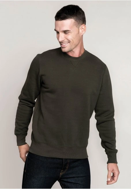 80% gekämmte Baumwolle / 20% Polyester 1ELSF 1C. Vorgeschrumpfte Ware, innen angeraut. Silikon gewaschen. Kontrastfarbenes Nackenband: Middle Grey (Farbton Oxford Grey) oder Heather Grey (alle anderen Farben). Rippstrickkragen mit Kreuzstichnähten. Rippstrickbündchen.