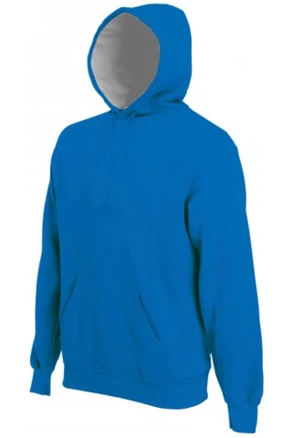 80 % combed cotton / 20 % polyester. Low shrinkage brushed fleece. Silicone wash. Heather grey contrast reinforced neck tape and inner hood for all colours, except for oxford grey body where reinforced neck tape and inner hood are dark grey. Set-in sleeves. Front kangaroo pouch pocket. Ribbed cuffs and waistband.