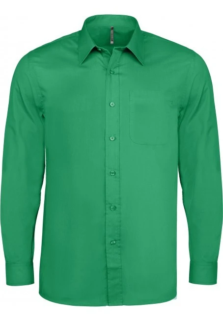 65% Polyester / 35% Baumwoll-Popeline. Pflegeleichter Stoff. Stäbchenverstärkter Kragen. Farblich abgestimmte Knöpfe. Aufgesetzte Brusttasche auf der linken Seite. Rückwärtige Schulterpasse. Eingesäumte Knopfleiste. Manschette mit 1 Knopf, dazu 1 Knopf auf dem Manschettenaufschlag. 2 Ersatzknöpfe.