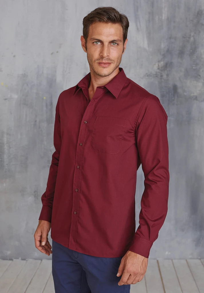 65% Polyester / 35% Baumwoll-Popeline. Pflegeleichter Stoff. Stäbchenverstärkter Kragen. Farblich abgestimmte Knöpfe. Aufgesetzte Brusttasche auf der linken Seite. Rückwärtige Schulterpasse. Eingesäumte Knopfleiste. Manschette mit 1 Knopf, dazu 1 Knopf auf dem Manschettenaufschlag. 2 Ersatzknöpfe.