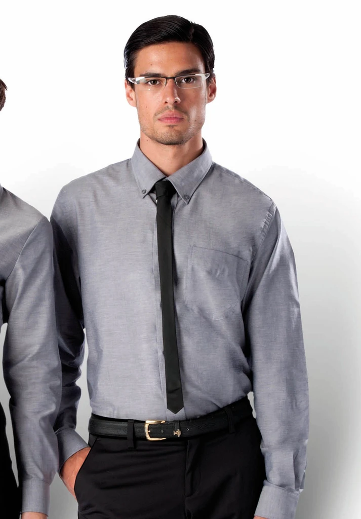 70% Baumwolle / 30% Polyester. Pflegeleichter Stoff. Verstärkter Button-Down-Kragen. Farblich abgestimmte Knöpfe. Aufgesetzte Brusttasche auf der linken Seite. Rückwärtige Schulterpasse mit 2 an den Seiten eingelegten Falten. Abgeschrägte Manschette mit 2 Knöpfen, dazu 1 Knopf auf dem Manschettenaufschlag. 2 Ersatzknöpfe. Abgerundeter Saum.