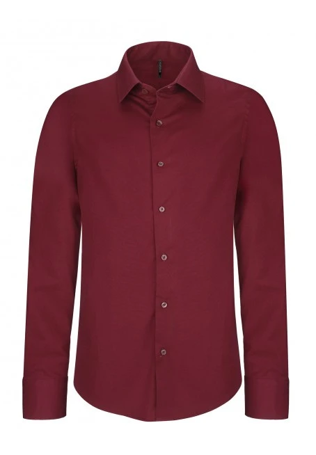 97% Baumwolle / 3% Elasthan. Körpernaher Schnitt. Halb ausgestellter, stäbchenverstärkter Kragen. Farblich abgestimmte Knöpfe. Rückwärtige Schulterpasse mit 2 an den Seiten eingelegten Falten. Abgeschrägte Manschette mit 2 Knöpfen, dazu 1 Knopf auf dem Manschettenaufschlag. 2 Ersatzknöpfe. Abgerundeter Saum.
