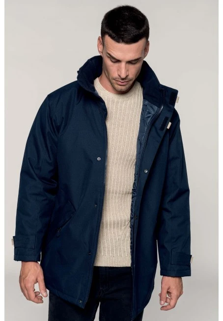 Außenmaterial: 100% Oxford-Polyester. Futter und Wattierung 100% Polyester. Klettverschluss-Kinnschutz, Full Zip mit Windschutzleiste und Klettverschluss. Große Innentasche mit Klettverschluss.